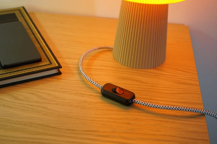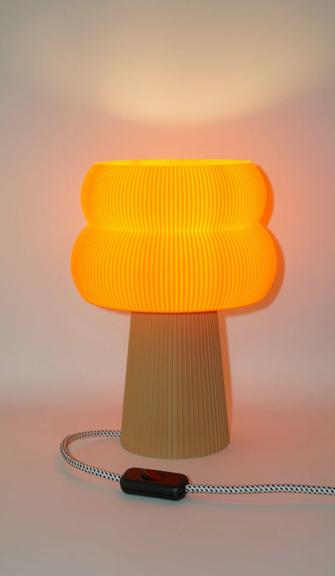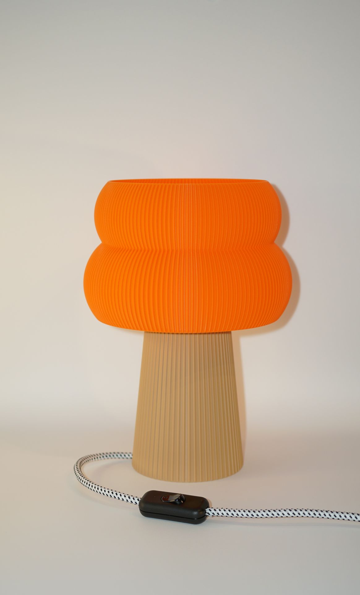 Forme organique texturé : abat-jour bulbe (20cm large), pied fuselé, H 28 cm. Lumière douce et moderne pour salon ou bureau. Câble 140 cm tressé.